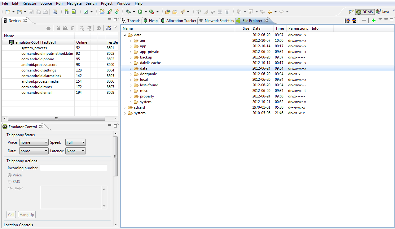 7) In order to view the files in development environment or emulator itself, there is a perspective called DDMS in Eclipse, just switch to that and have your Android Virtual Device started.